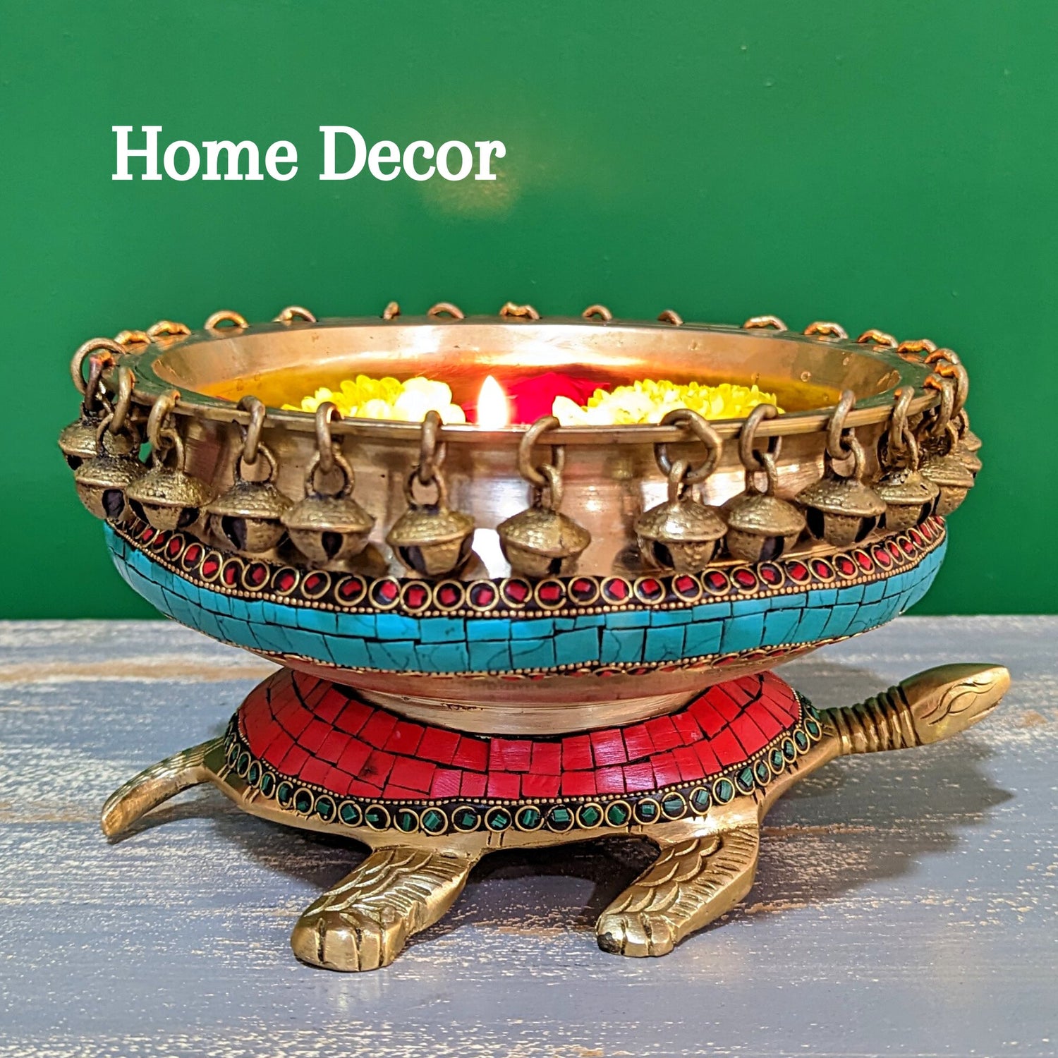 Our brass items are crafted using high-quality brass alloy, ensuring durability and an authentic golden finish. We use traditional crafting techniques combined with modern quality standards. Some items may also incorporate other metals or decorative elements like copper accents or silver plating for enhanced aesthetic appeal.