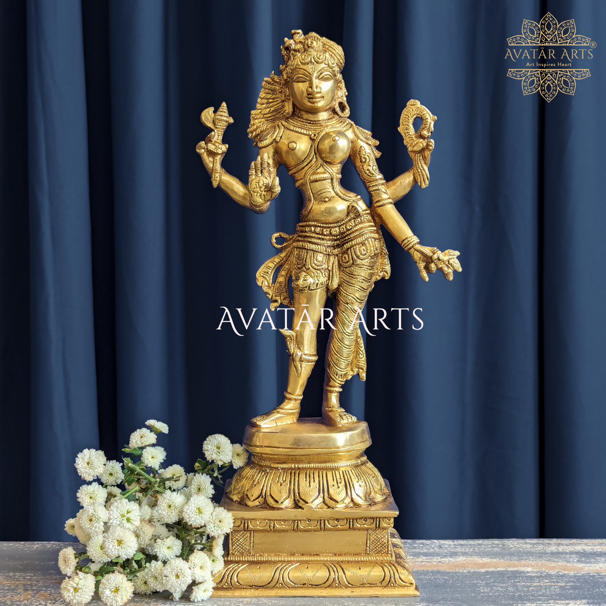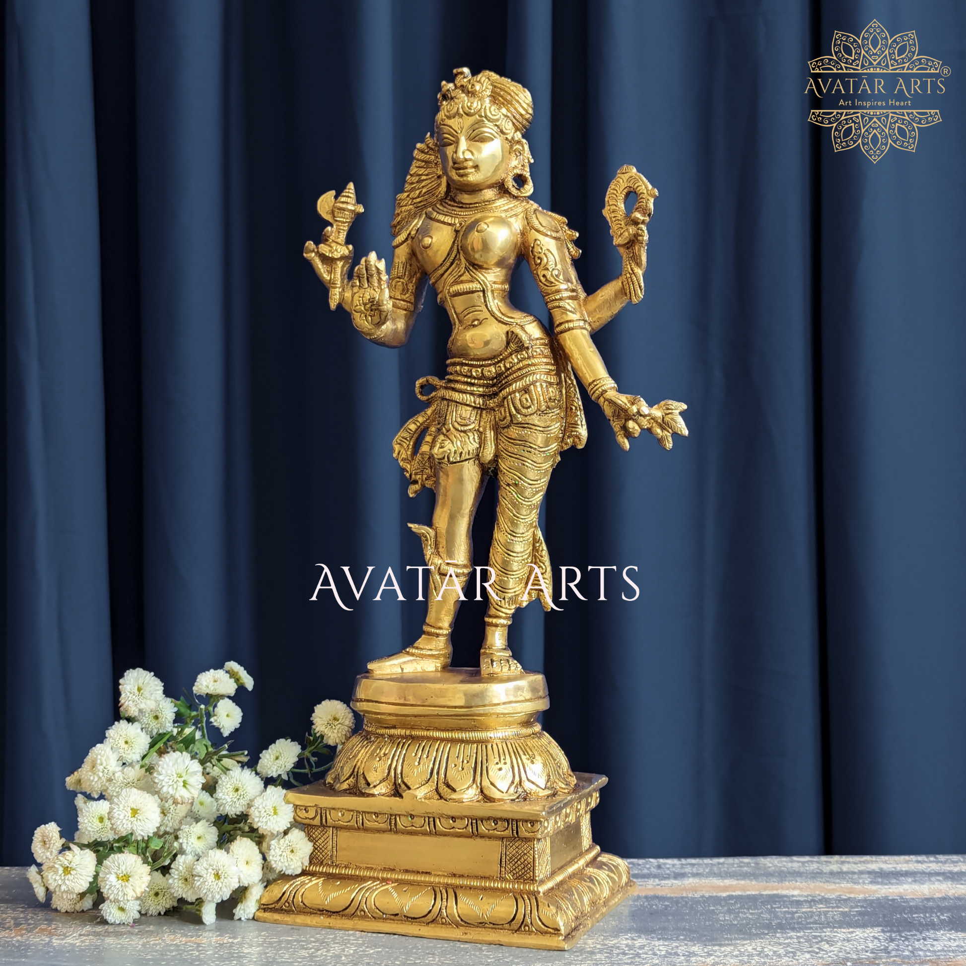 Help your family attain the perfect balance of virtues with this Brass idol of Lord Shiva in the Ardhanarishvara form.