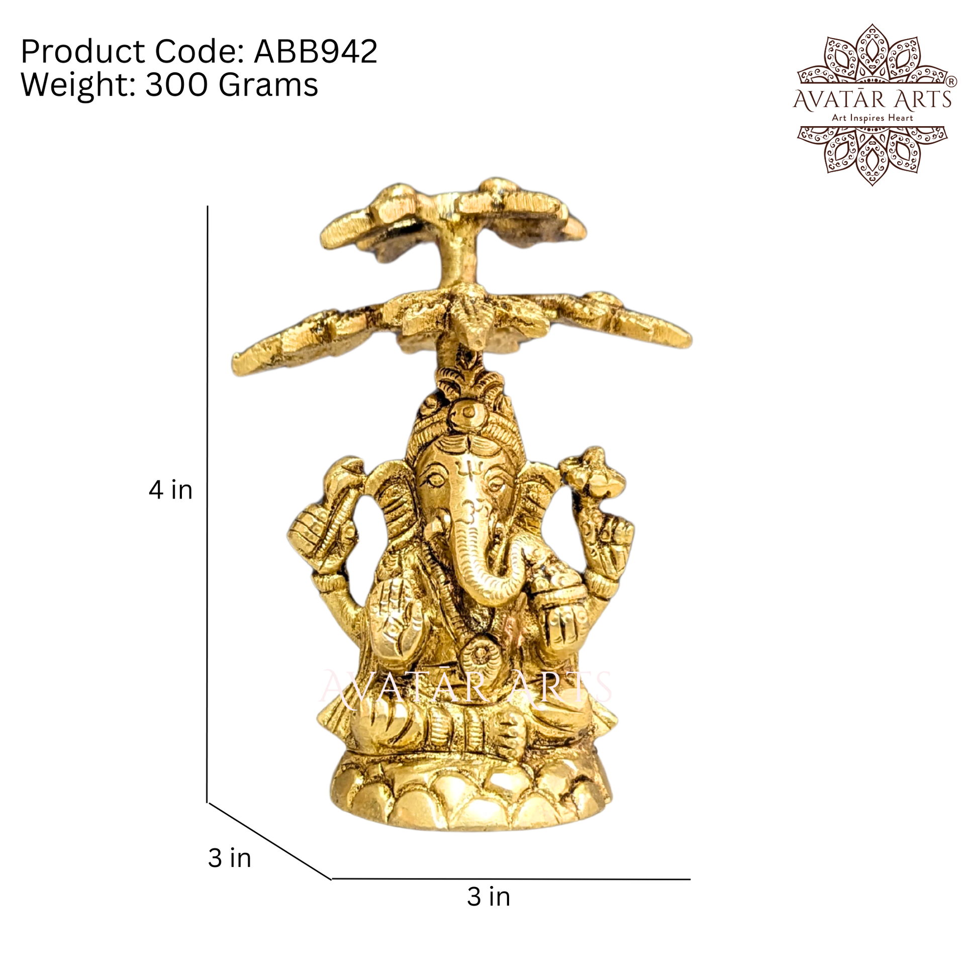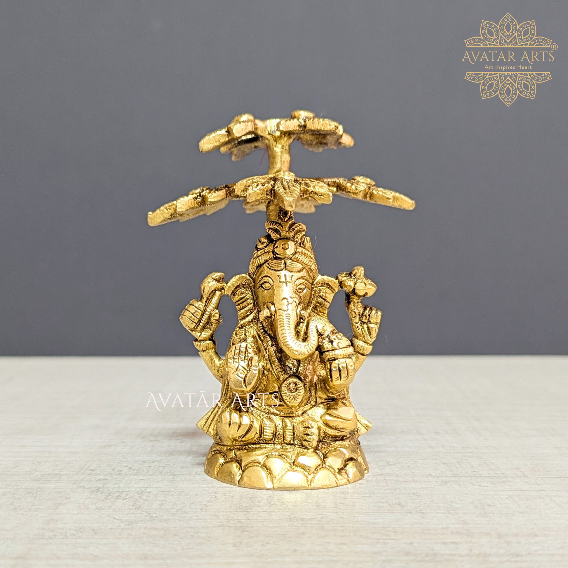 This beautiful Lord Ganesha sitting under a tree idol is crafted in premium brass with the best quality, finish and workmanship, making it a divine addition for daily pooja, festival rituals, and auspicious celebrations like Ganesh Chaturthi. The intricate carving of the Kalpavriksha above Him adds serenity and abundance to your space, making it a perfect choice for traditional Indian home decorating ideas, festive décor, and sacred corners. Whether placed in your living room, temple space, office or gifted as a Handmade Gift, this elegant brass idol enhances home décor effortlessly and brings blessings of wisdom, prosperity, and protection into your home