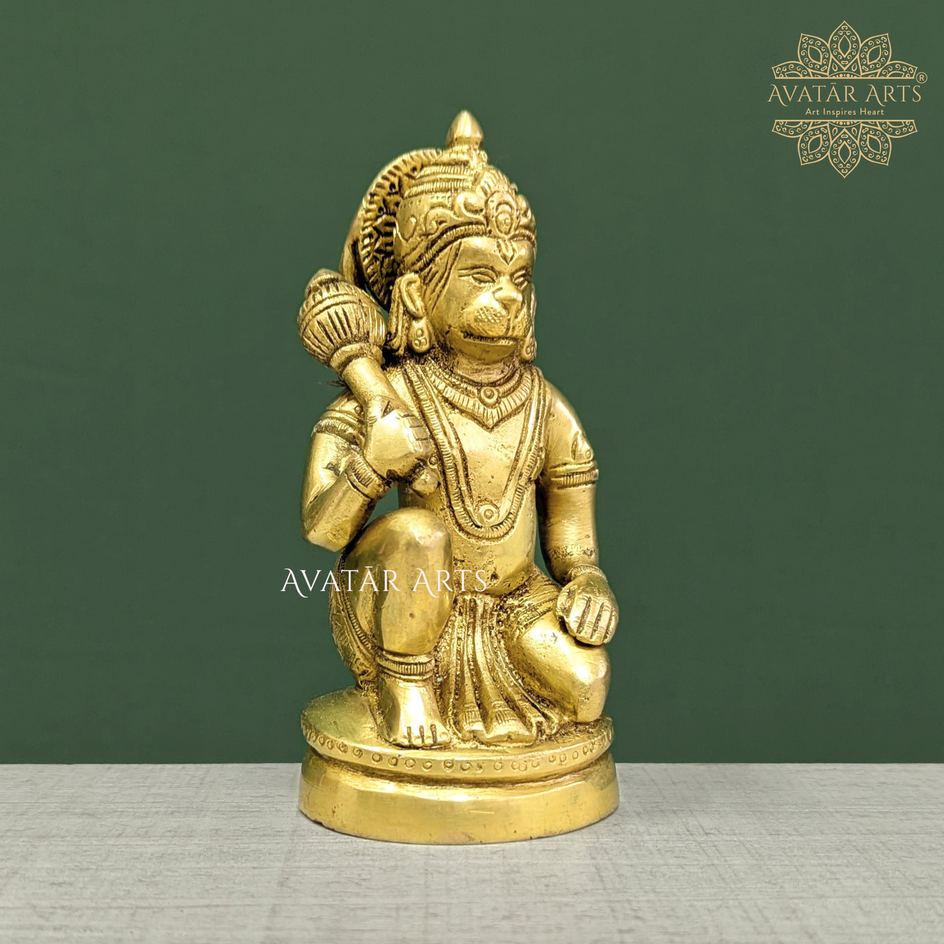 This powerful idol of Lord Hanuman depicts him seated calmly with his gada (mace) resting on his shoulder, symbolising immense strength balanced with humility, devotion, and self-control. This posture reflects Hanuman’s ever-ready protection, courage, and unwavering service to Lord Rama. Worshipping Lord Hanuman in this form is believed to remove fear, grant physical and mental strength, protect from negative energies, and instill confidence and discipline—making it especially auspicious for homes, offices, and personal prayer spaces.