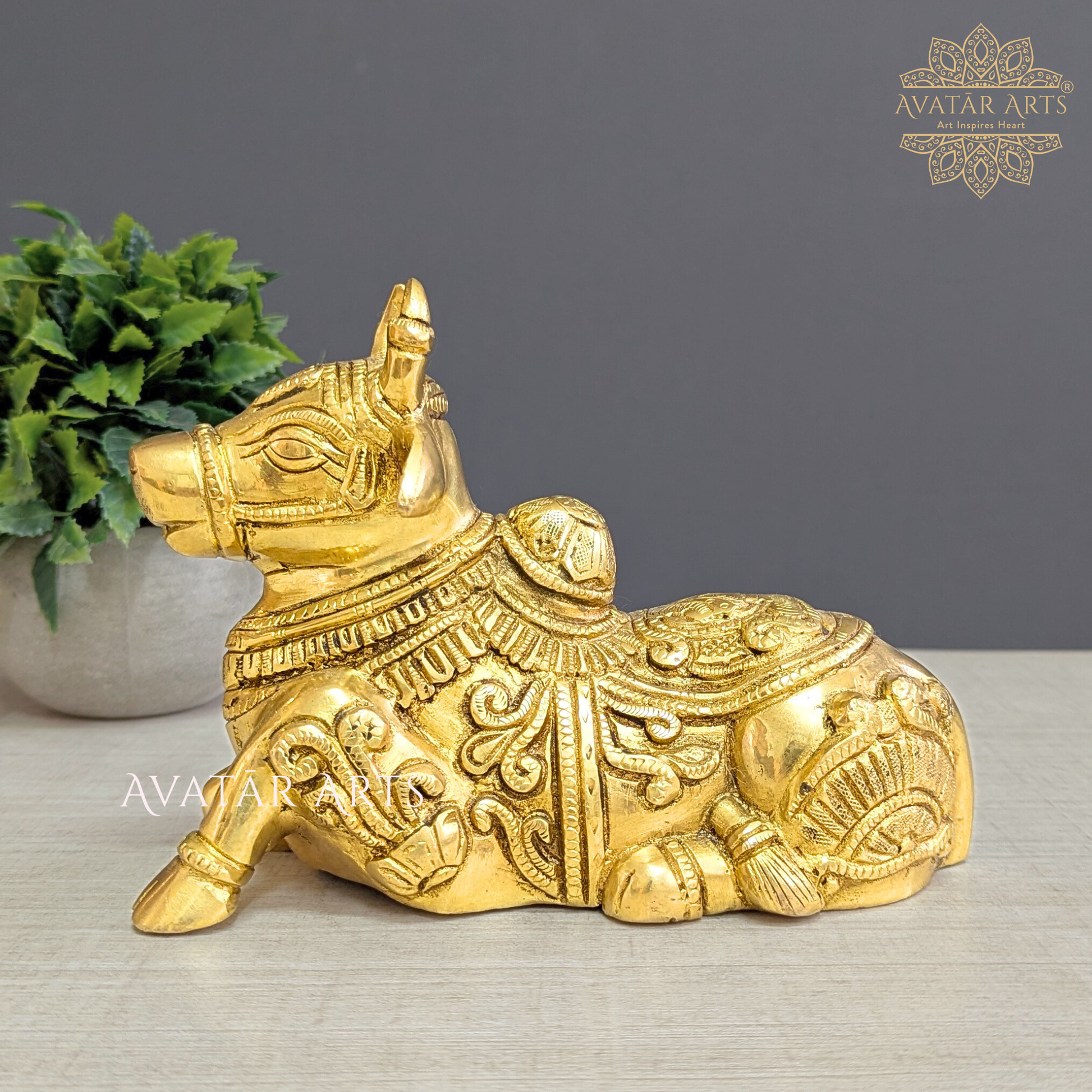 Presenting our handmade brass statue of Lord Nandi, crafted with beautiful carvings, best quality brass and an impeccable antique finish. This sacred masterpiece brings serenity, power and positivity to any space.