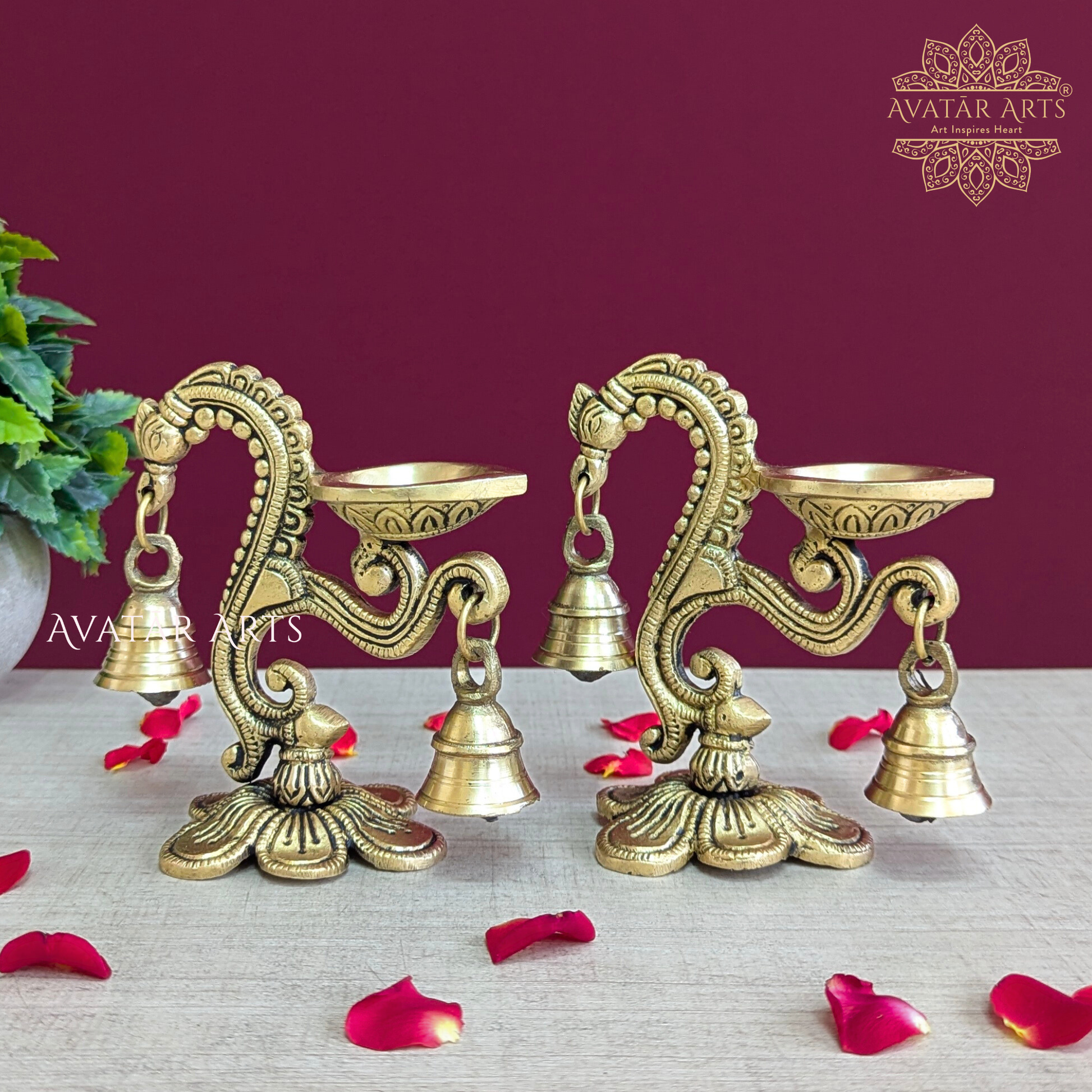 Illuminate your space with this exquisite pair of brass lamp stands, thoughtfully handcrafted with the finest quality and unmatched workmanship. Designed with beautiful artistic detailing, these classic pieces reflect timeless elegance and traditional Indian craftsmanship. The rich brass finish adds warmth and grandeur, making them perfect for your pooja room, entrance décor, living room styling, or festive décor arrangements. Whether placed beside a mandir, at the doorway, or as a statement in your home décor collection, these lamps effortlessly enhance your home decoration with divine charm.