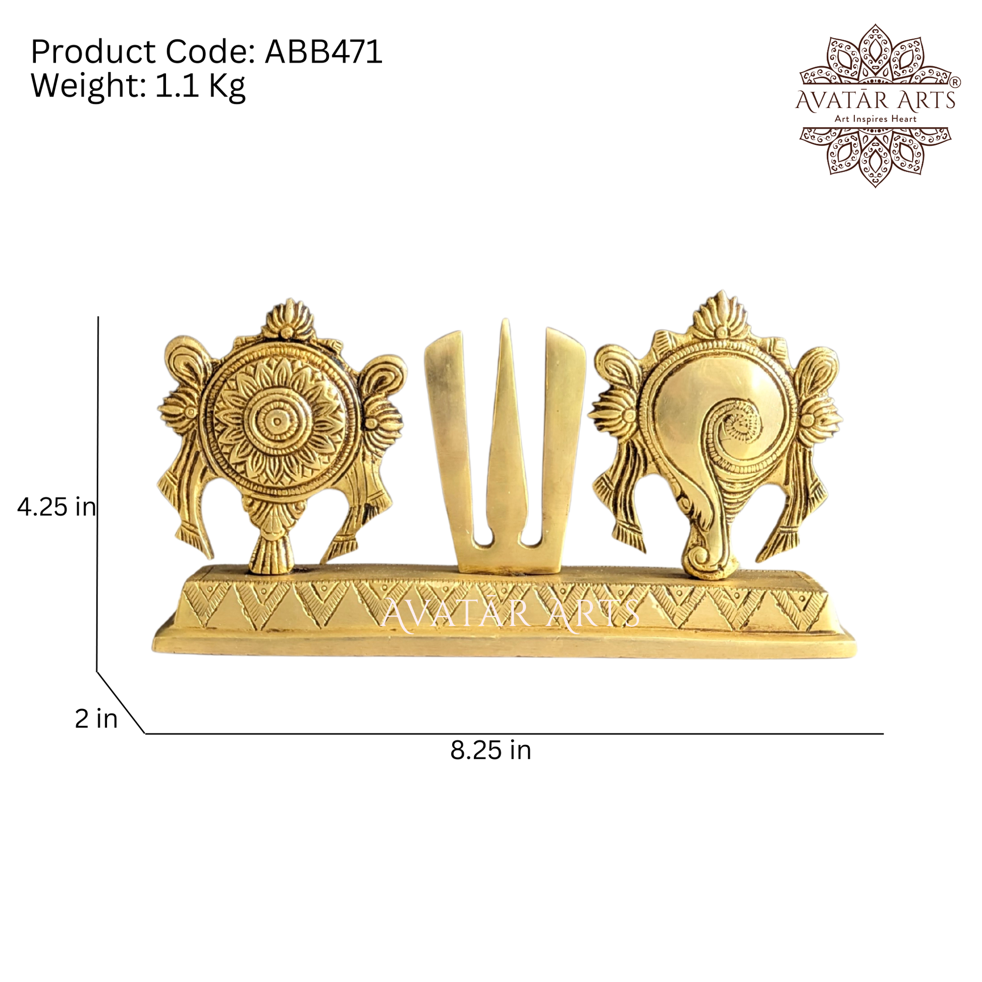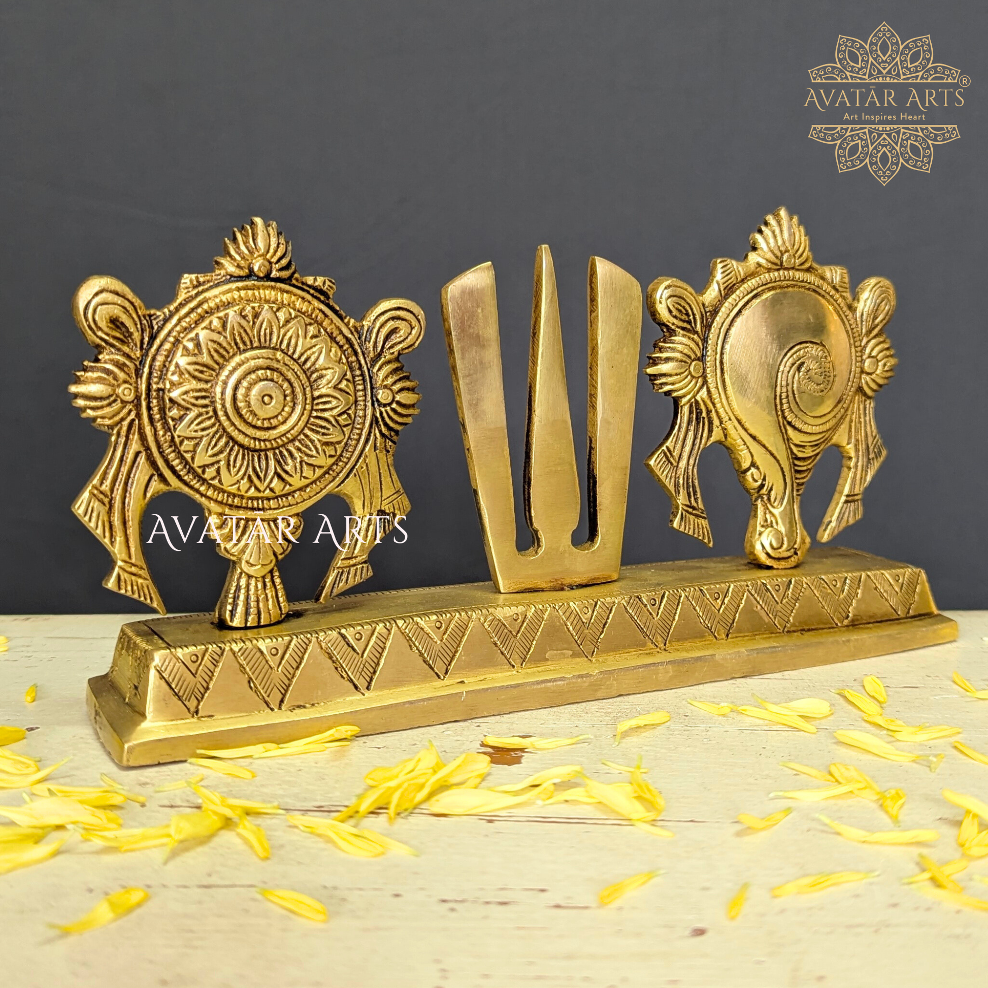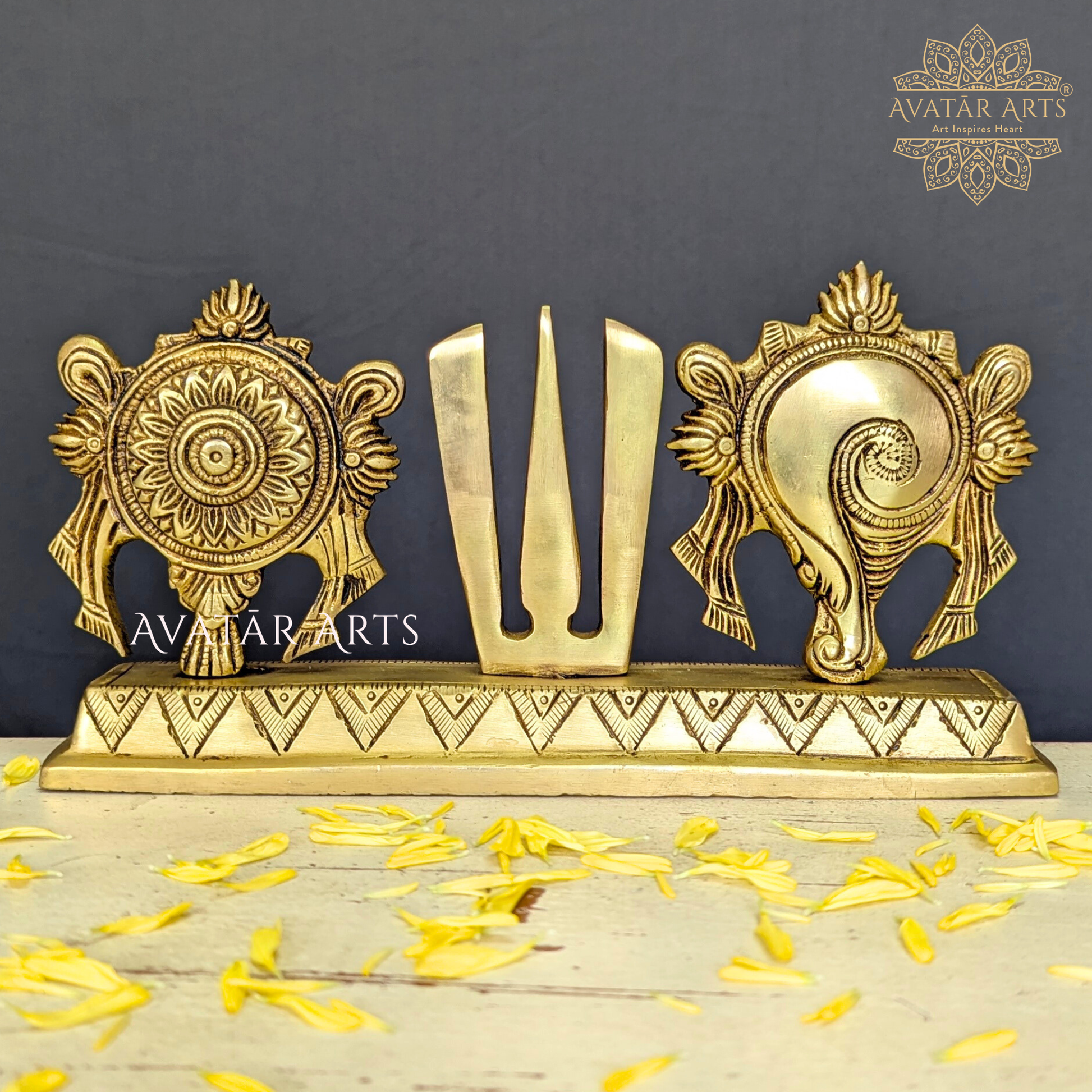 Invite the divine blessings of Tirupati Balaji Venkateshwara Swamy into your sacred space with our exquisitely crafted Brass Shankh Chakra Namam, made from the best quality brass with superior finish and fine workmanship. The sacred symbols of Shankh and Chakra represent the divine attributes of Lord Venkateshwara, while the Namam signifies pure devotion and surrender to Him. Keeping this auspicious combination in your pooja space is believed to invoke the Lordโs presence, offering protection, prosperity, and spiritual upliftment, and strengthening your daily worship with the sacred energy of Tirumala. A perfect addition to divine traditional decor and festive decor, this sacred piece beautifully enhances the spiritual essence of your rituals, making it an ideal choice for those seeking meaningful home decor items, brass decor, and timeless Indian handmade gifts.
