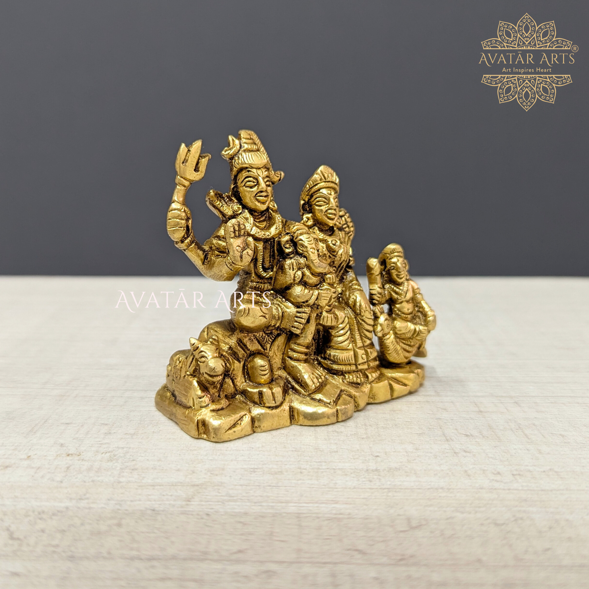 The small-sized Shiva Parivar statue, meticulously handcrafted in premium brass with exceptional detailing and fine workmanship, is a powerful yet compact divine idol perfect for daily Pooja, festival rituals, and auspicious celebrations like Mahashivratri, Shravan Pooja, and Navratri. Despite its size, the intricate carvings of Lord Shiva, Goddess Parvati, Lord Ganesha, and Kartikeya radiate purity and positive energy, making it an ideal choice for Pooja rooms, home temples, and festive décor. This miniature brass idol brings blessings of harmony, protection, and prosperity and also serves as a thoughtful Handmade Festive Gift for loved ones during sacred occasions.