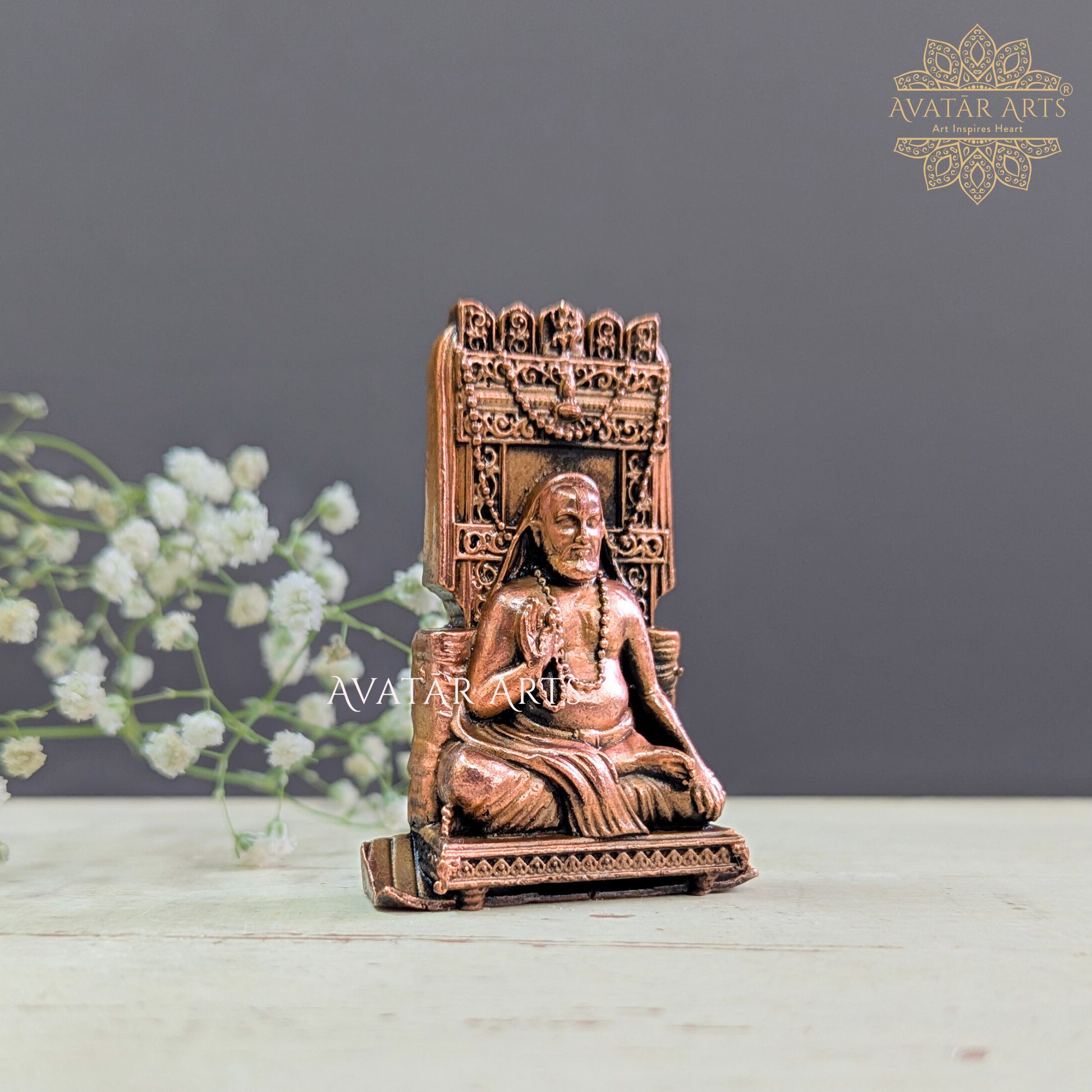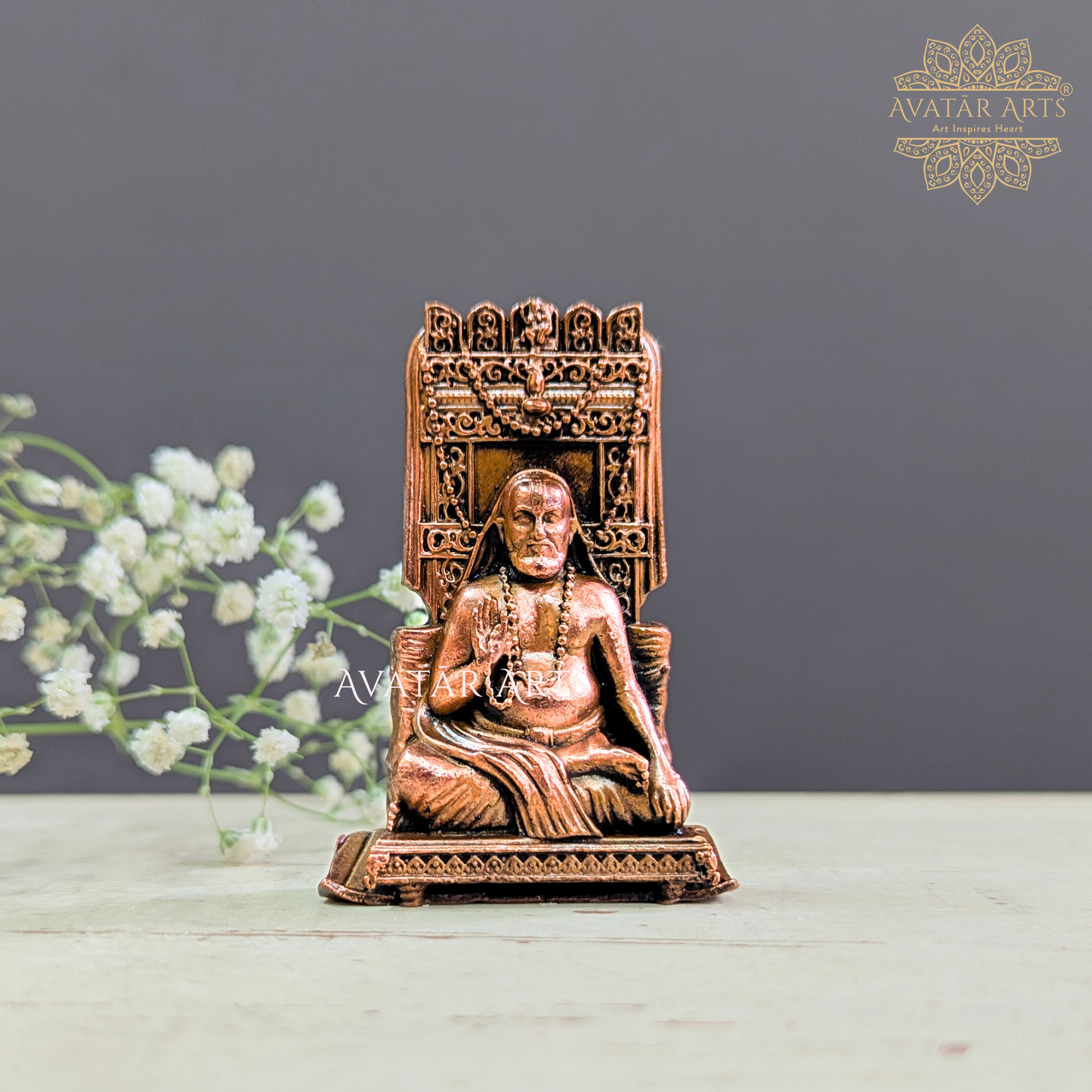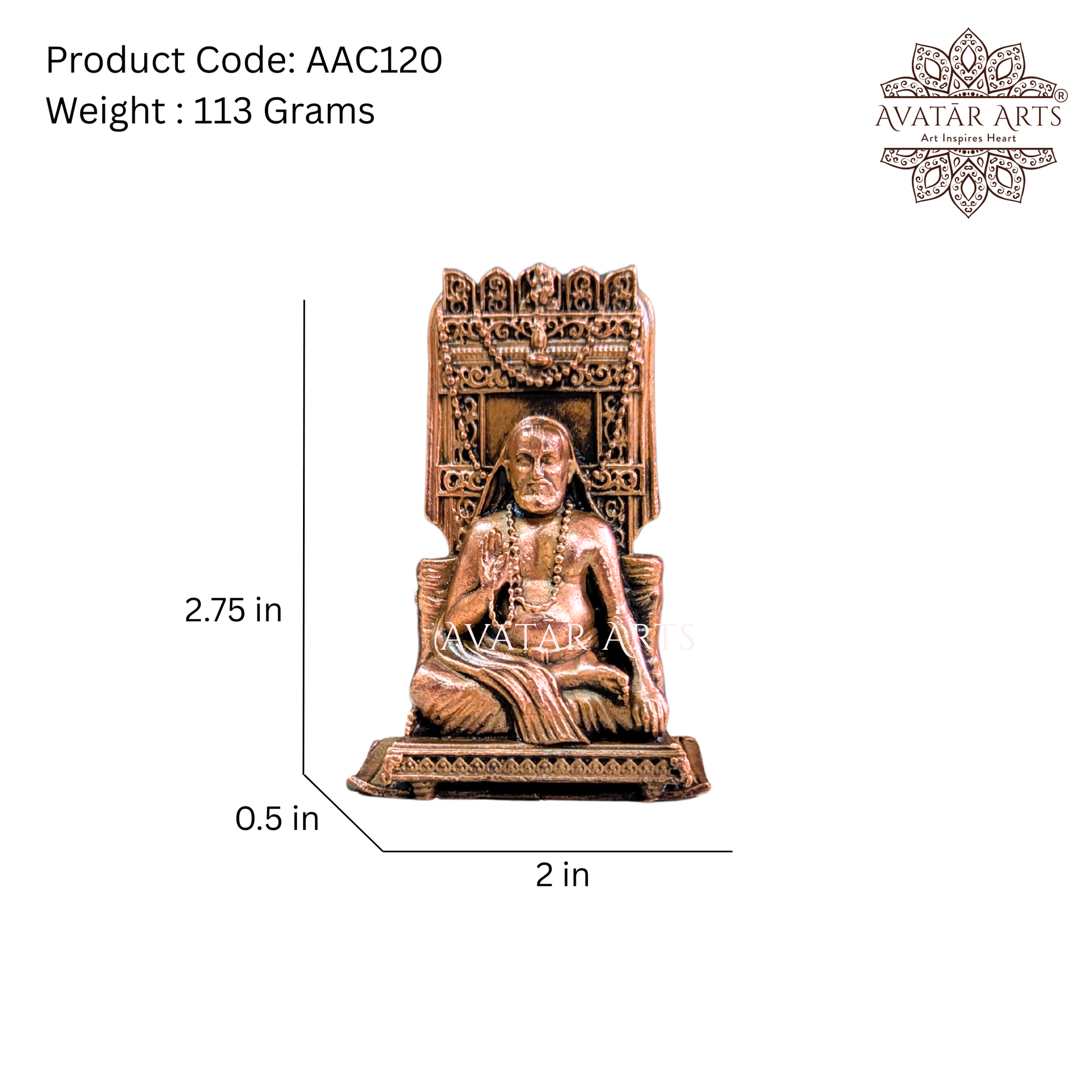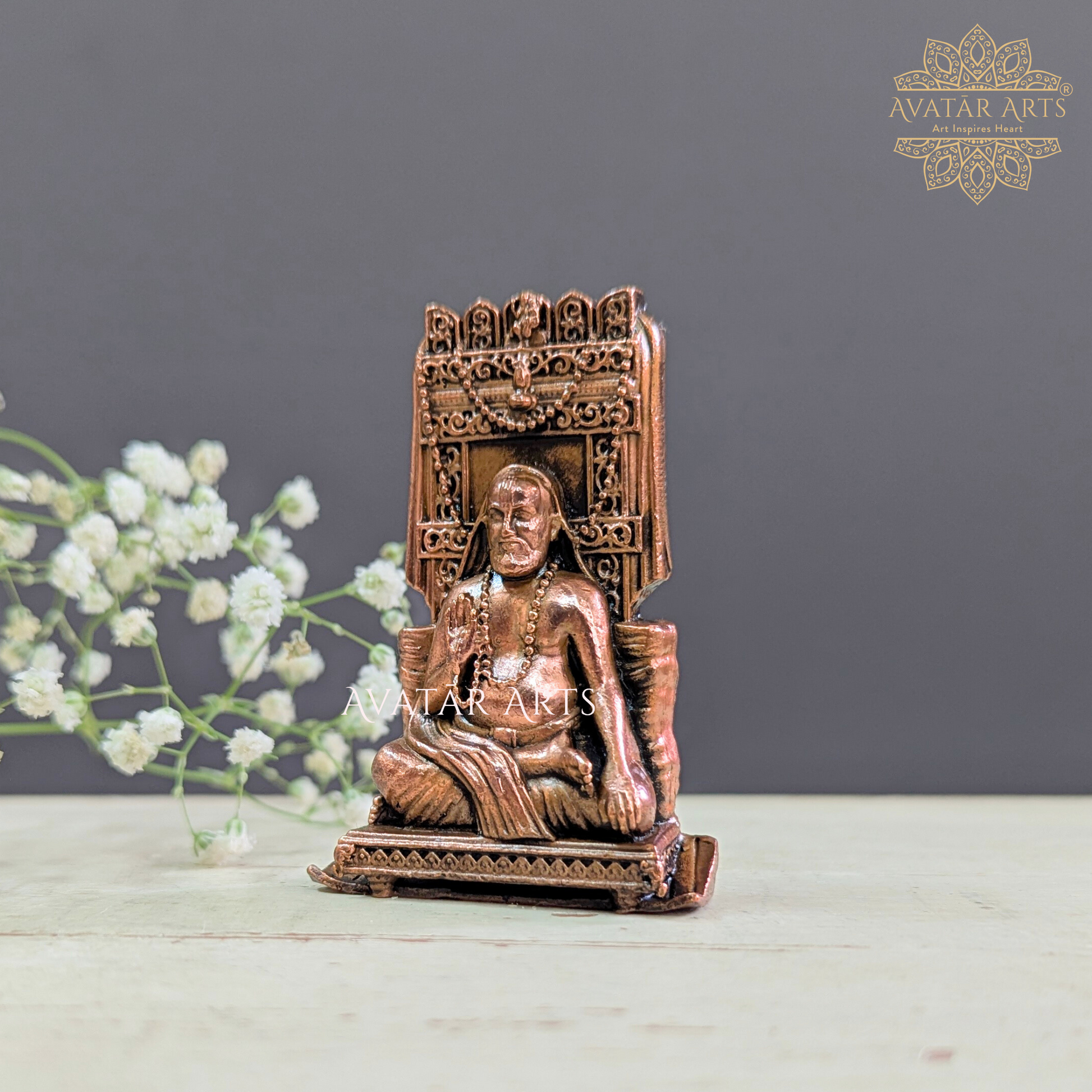 Bring home the sacred presence of Sri Raghavendra Swamy with this beautifully crafted idol made of high-quality copper. Though compact in size, this idol showcases remarkable detailing—from the serene facial expression to the folds of the robe—each element reflects the grace and divinity of the revered saint.