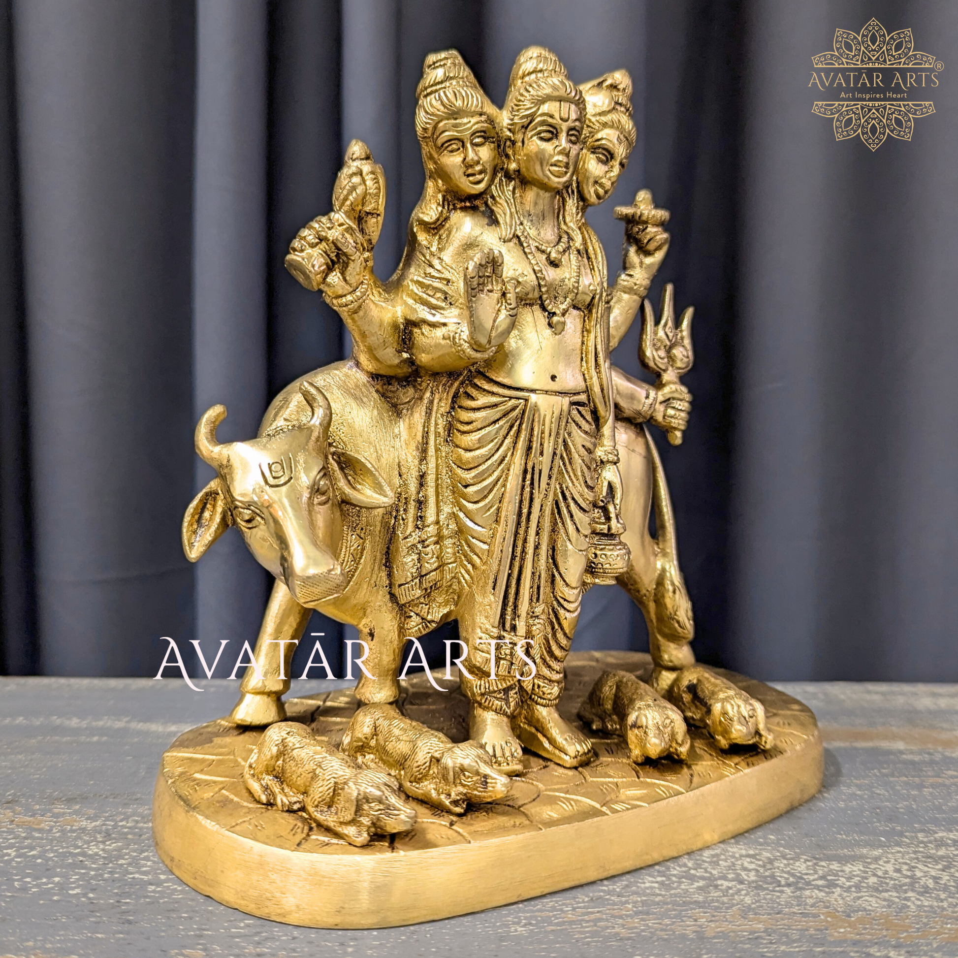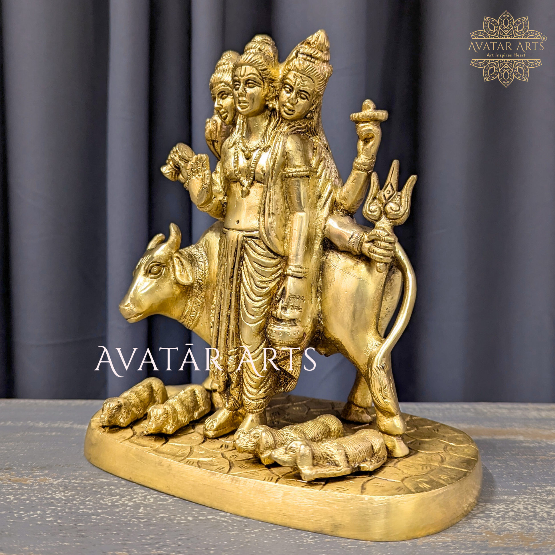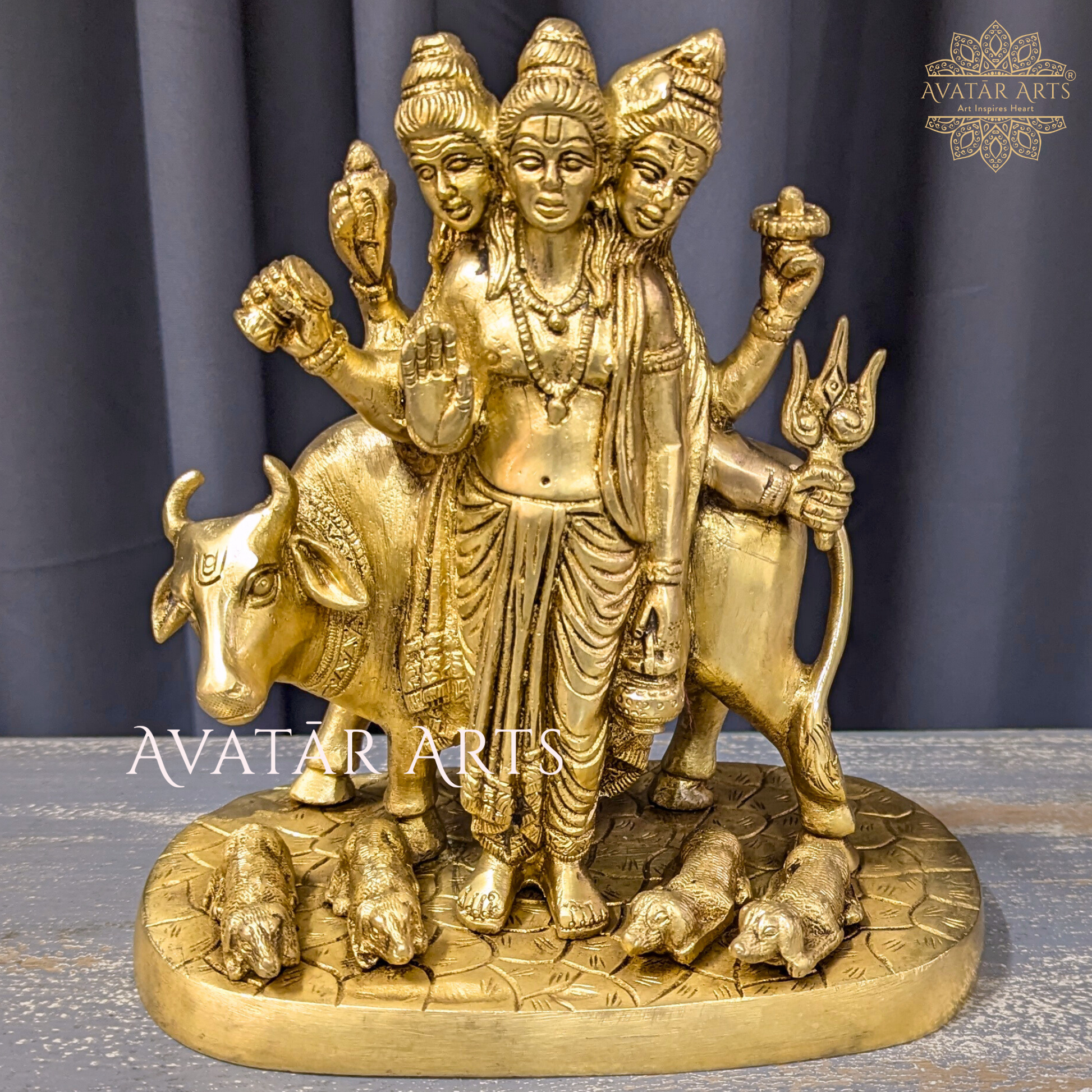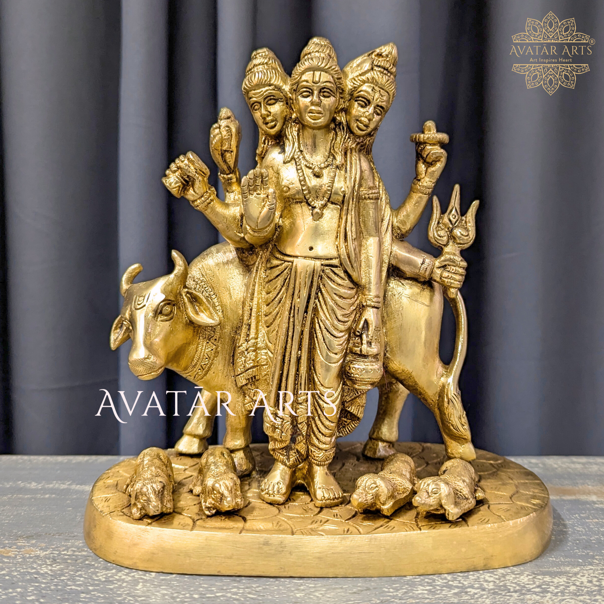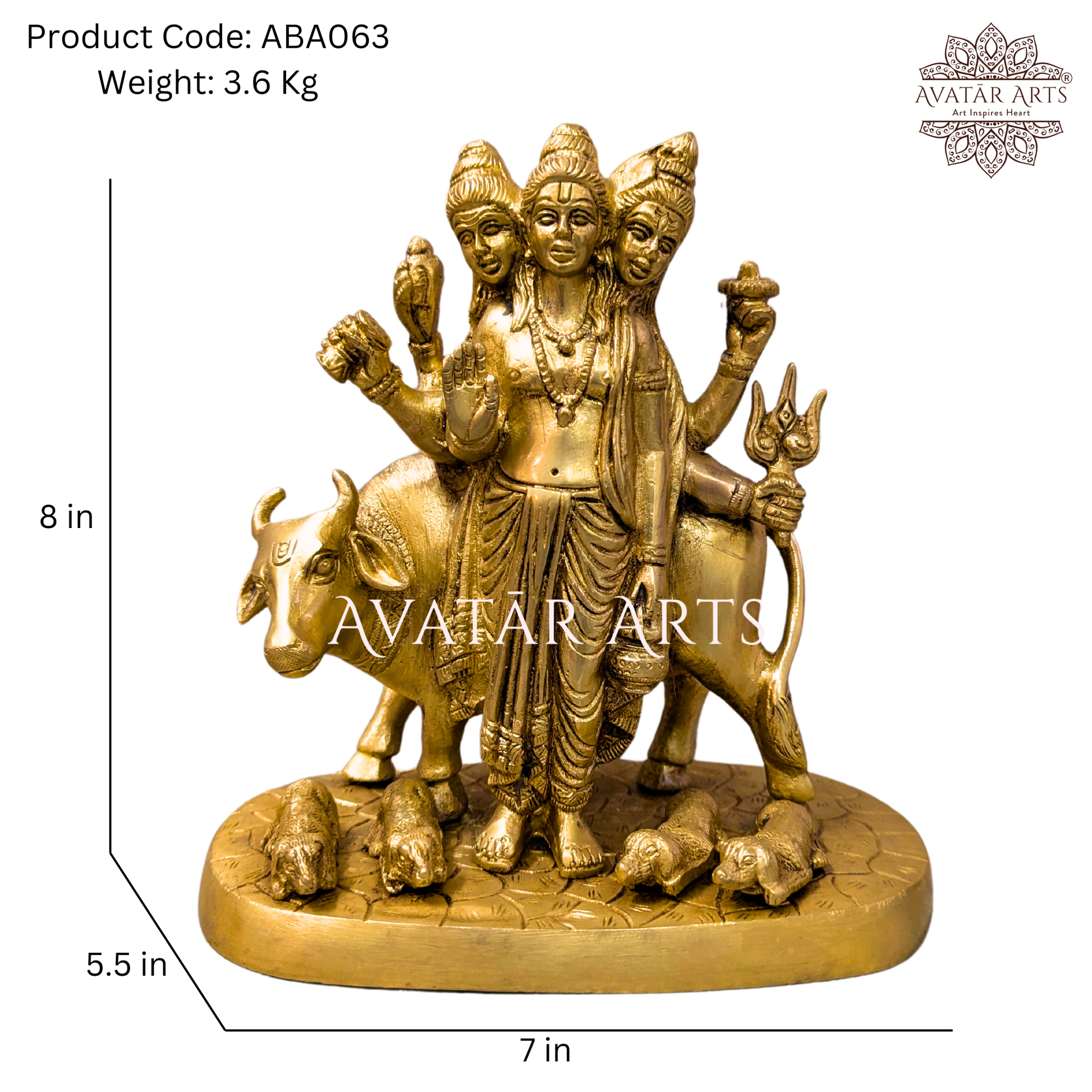 Welcome the divine aura with this exquisite brass idol of Lord Dattatreya. Let His sacred energy fill your space with blessings and harmony.