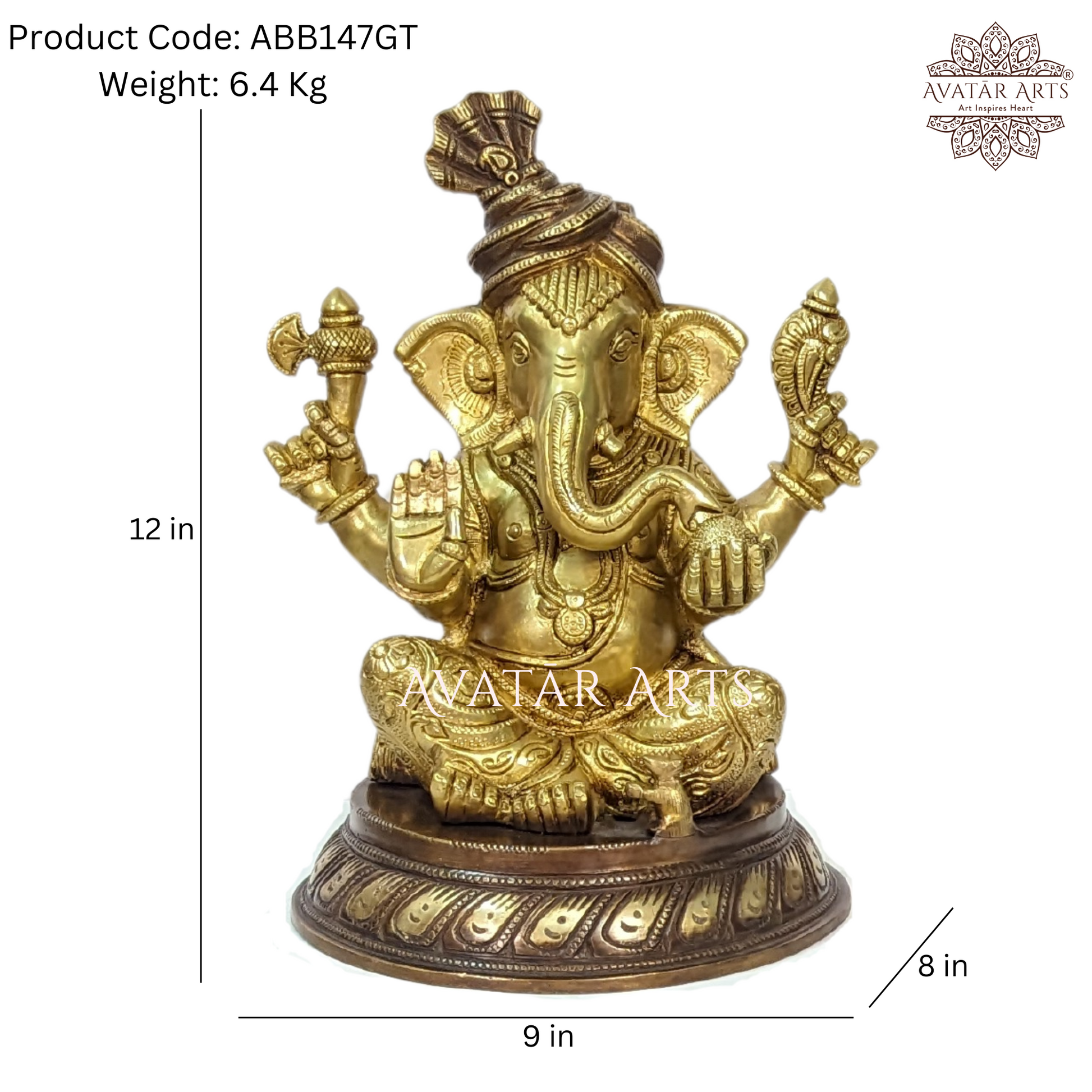 Capturing the divine elegance of Lord Ganesha in this intricately crafted brass idol, adorned with exquisite two-tone finishes in brown and golden hues. Each curve and detail reflects the artistry that breathes life into this divine masterpiece, capturing the essence of spirituality and tradition.