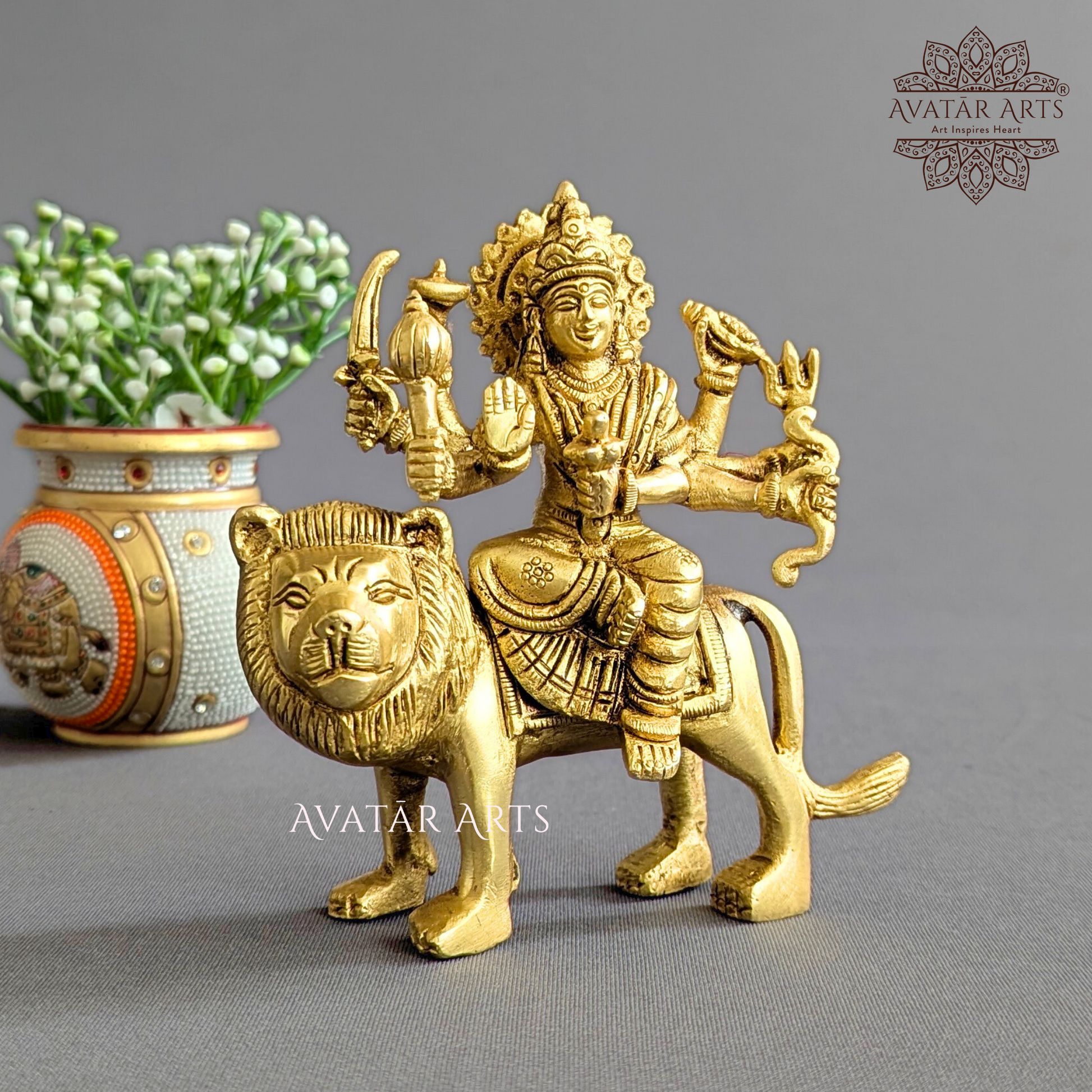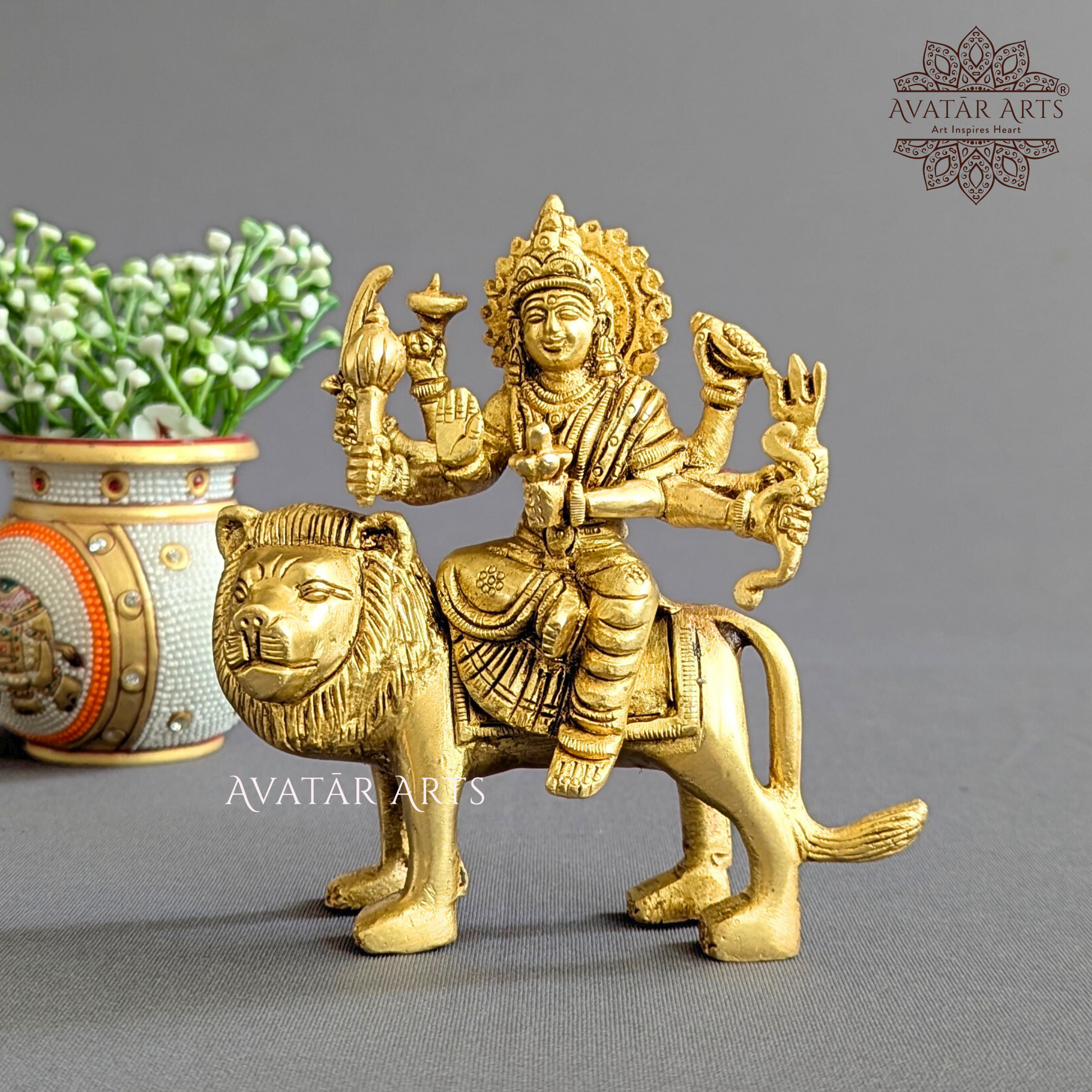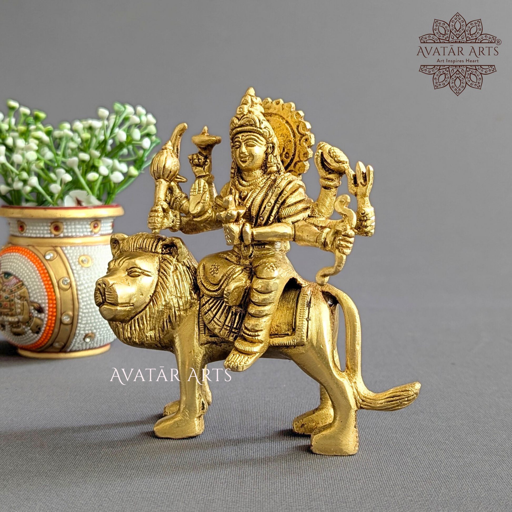 Step into a world of divine grace and power with our exquisite Brass Goddess Durga idol!