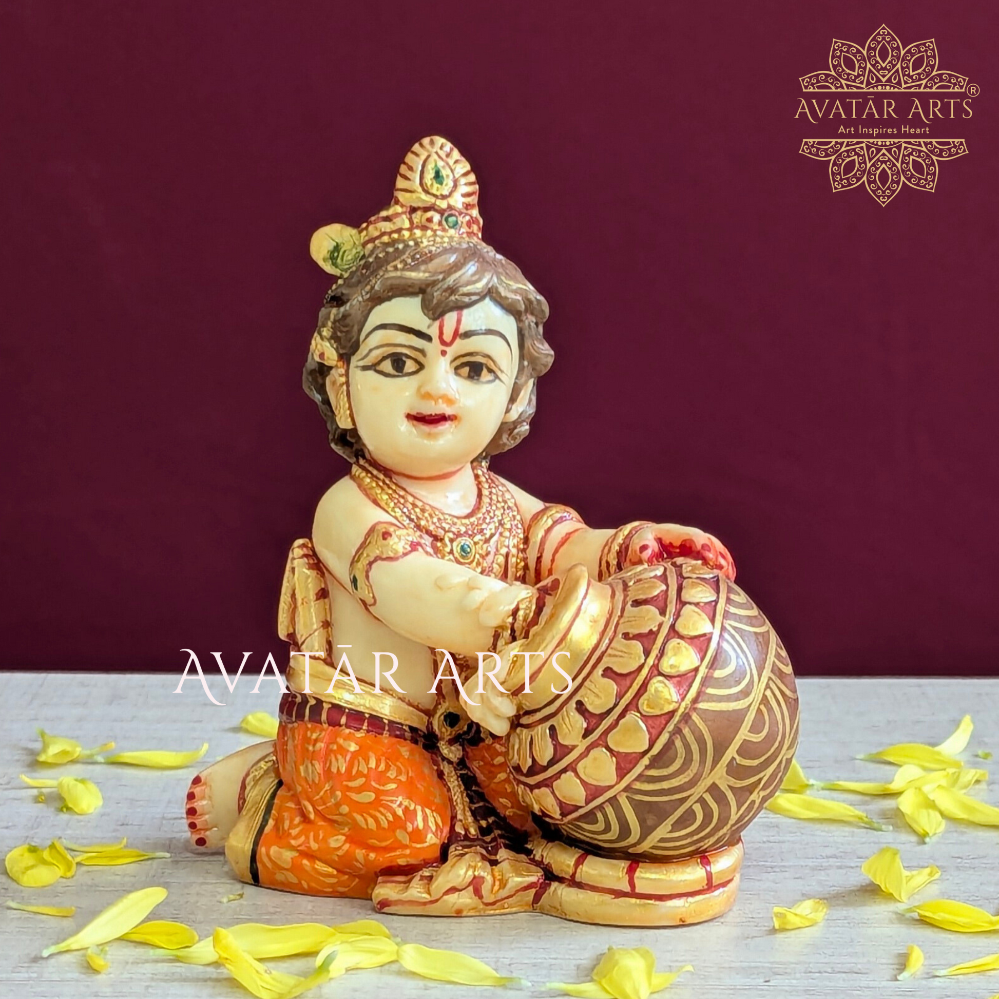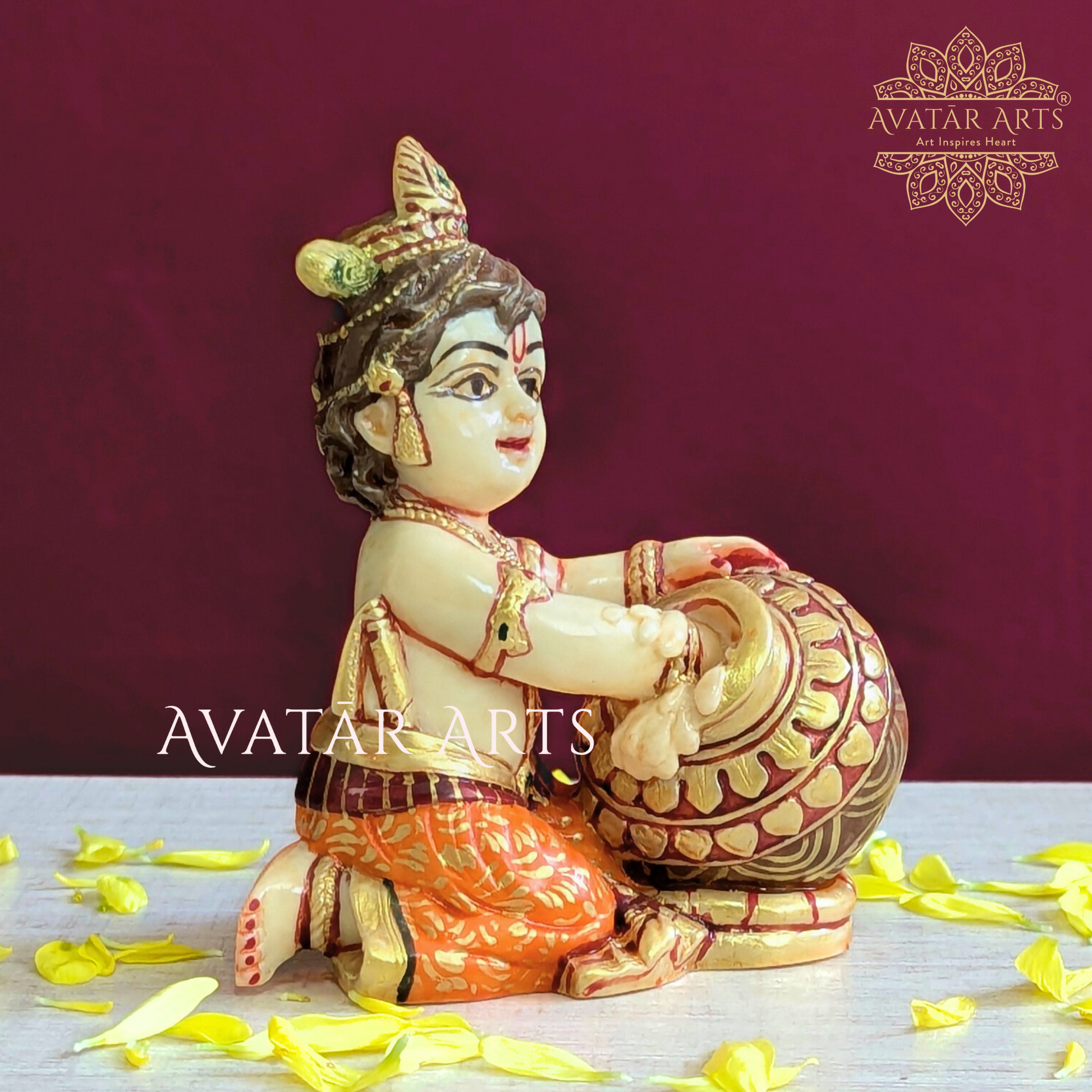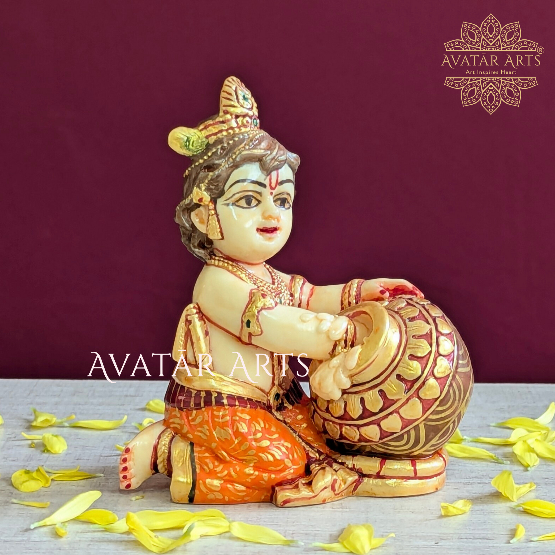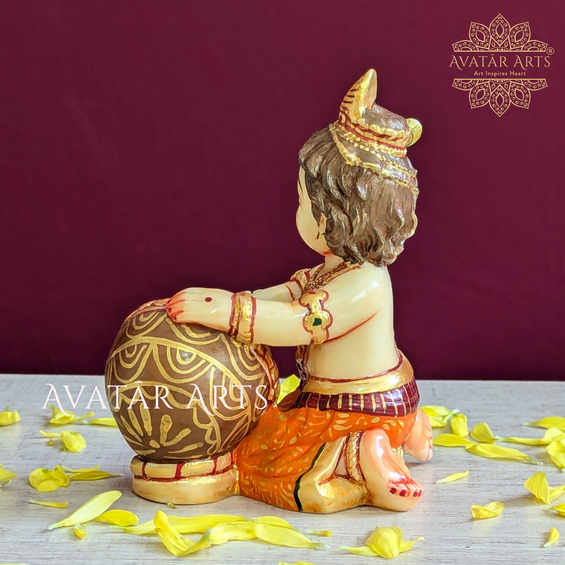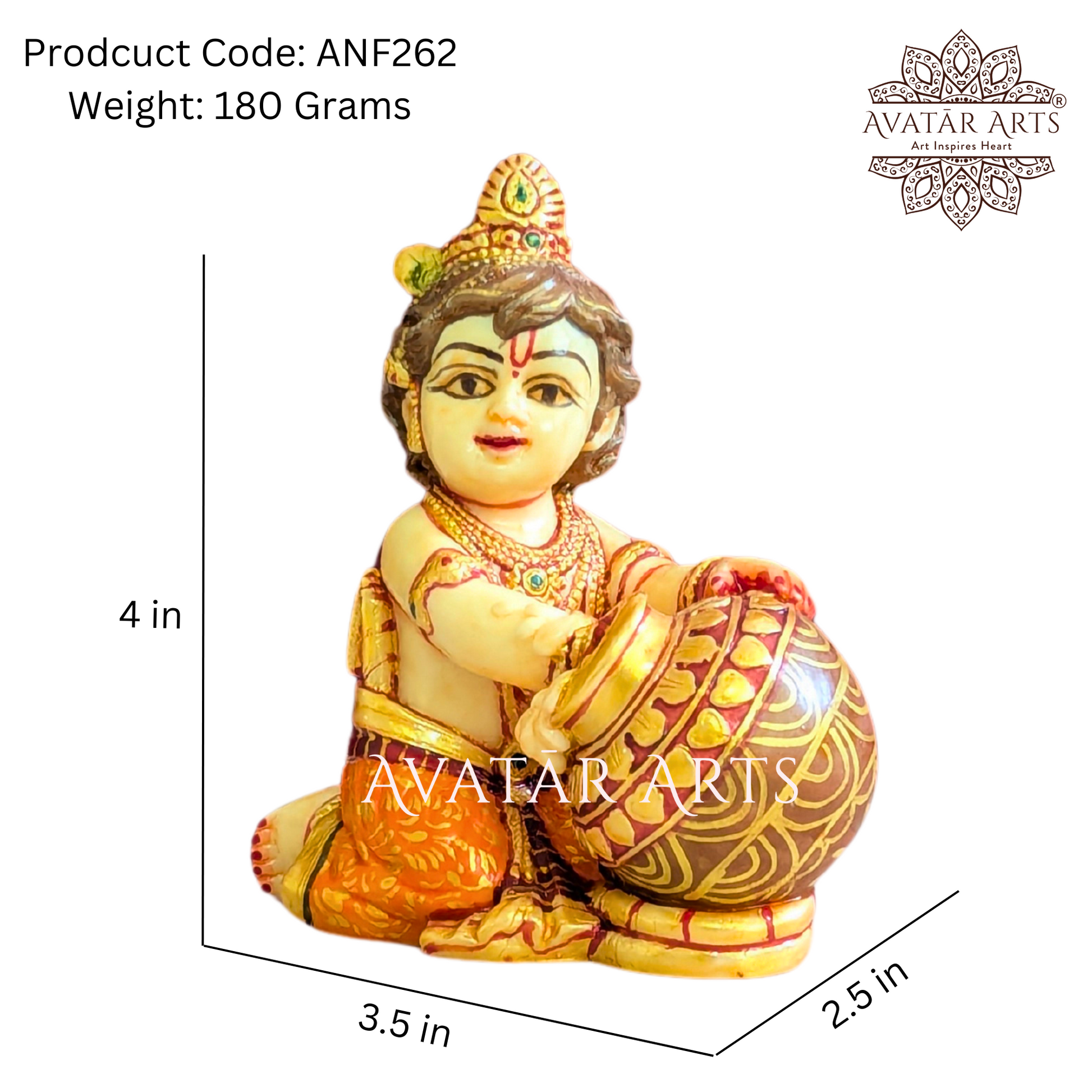 Invite divine blessings into your home with this beautifully handcrafted idol of Baby Krishna with a Pot of Butter, fondly known as Maakhan Chor. Made from high-quality marble powder and delicately hand-painted, this idol reflects Krishna’s playful innocence and love for butter, symbolizing prosperity and fulfillment. Worshipping Bal Gopal in this form is believed to bring joy, positivity, and harmony to your space. A perfect choice for gifting on special occasions, it adds a touch of devotion and charm to any home or puja room.