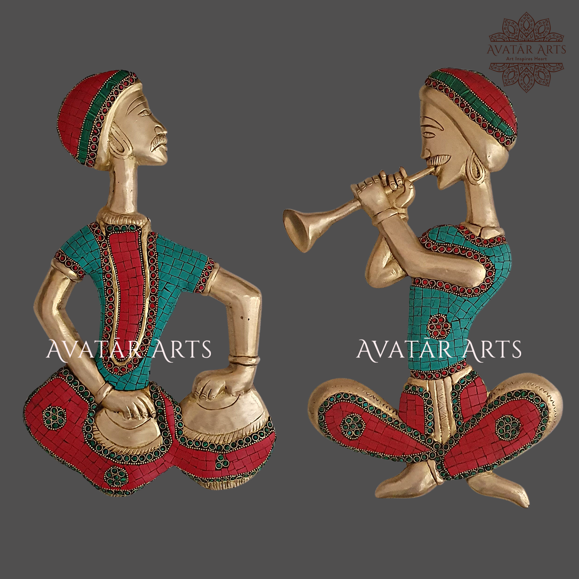 These Brass Musicians are Wall-Mounting Decor Artifacts that give a contemporary yet classy ambience to its background, and brighten up the empty spaces in your walls! The figurines are made of high quality Brass and adorned with stone work, which subtly accentuates their beauty.